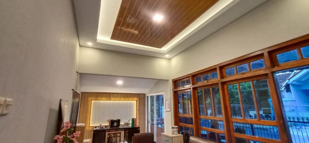 Ruang tamu merupakan bagian yang cukup penting pada rumah. Sebagai ruangan yang menjadi tempat singgah atau tempat untuk menerima tamu, tentu saja ruang tamu merupakan ruangan yang akan sering dilihat oleh selain penghuni rumah, sehingga dekorasi dan tampilan ruang tamu sangat penting untuk diperhatikan. Ruang tamu yang enak dipandang pasti akan membuat tamu menjadi lebih nyaman dan memberikan kesan positif. Pasti anda juga akan merasa senang dan bangga kan jika mendapat kesan positif dari tamu anda yang berkunjung? Salah satu dari interior ruang tamu yang cukup penting yaitu Plafon.